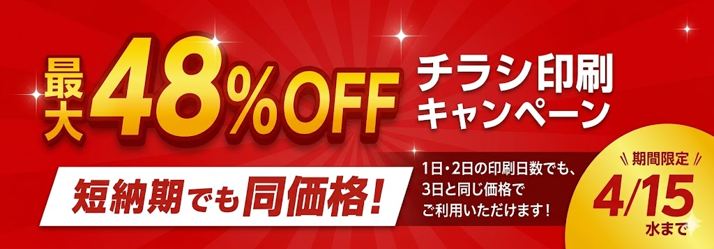 - 【キャンペーン】最大48%OFF!チラシ印刷 短納期同額キャンペーン