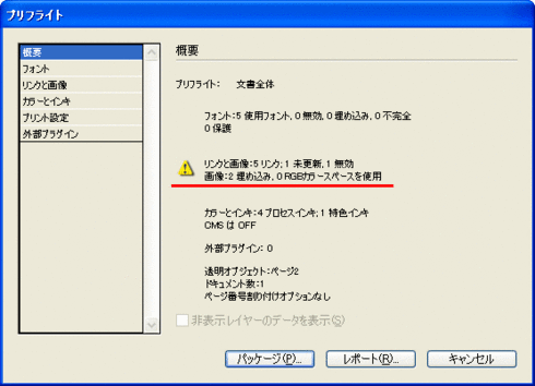 ■「プリフライト」の「概要」の画面が表示されます。